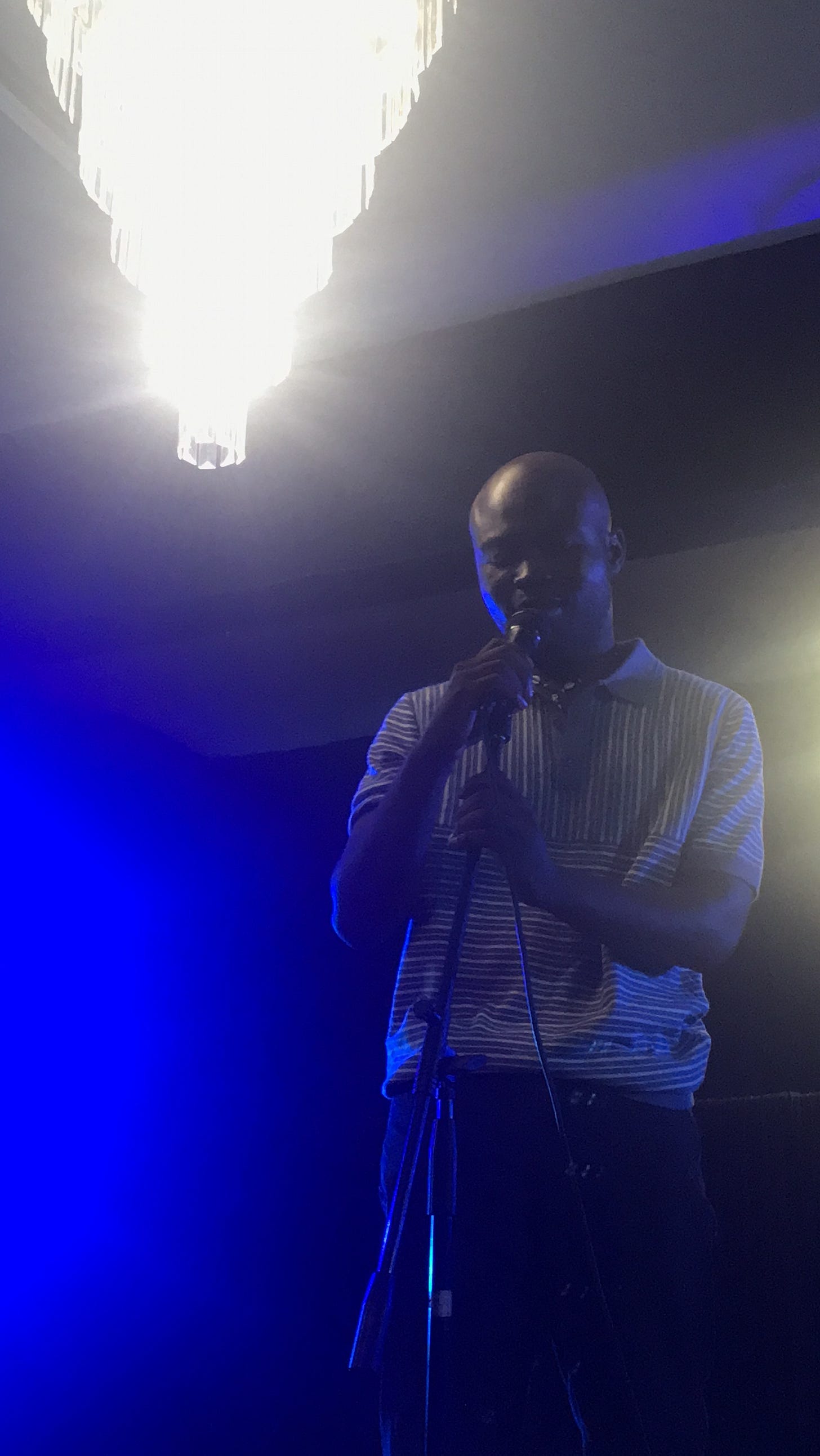 This is a picture of me on stage at the Poetry on Thursday event held last month at Trade Fair. - It’s been a year.